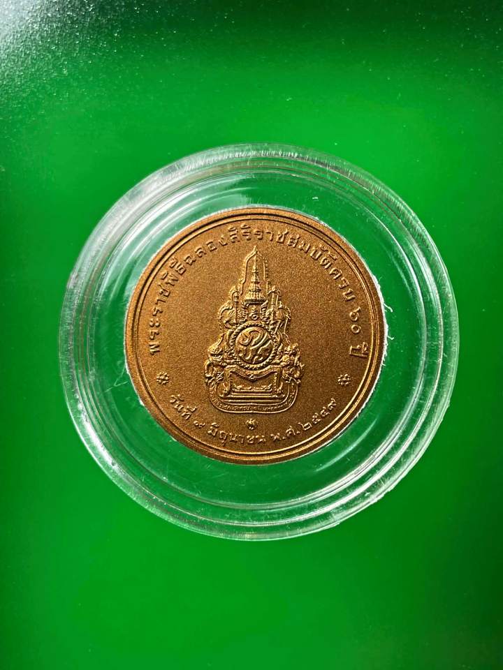 15 เหรียญในหลวงรัชกาลที่ 9 ฉลองสิริราชสมบัติครบ 60 ปี เนื้อทองแดงซาติน พร้อมตลับ