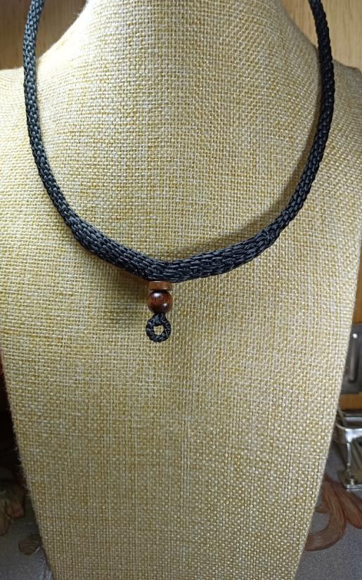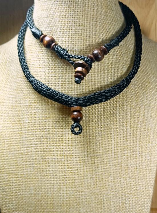 สร้อยคอเชือกเทียน งานถักมือ ( สีดำ+แซมลูกปัดไม้ธรรมชาติ ห้อยพระ1องค์ )ยาว11นิ้ว เคาะเดียวครับ