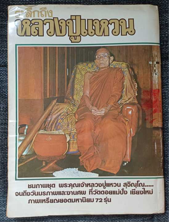 หนังสือเก่าที่ระลึก หลวงปู่แหวน สุจิณโณ วันมรณภาพ และงานศพ วัดดอยแม่ปั๋ง จ.เชียงใหม่ ปี 2528 พร้อมเหรียญยอดนิยม 72 รุ่น ***หนังสือสภาพเก่ามีครบเลอะ เนื้อหาดี พิจารณาตามภาพประกอบ***