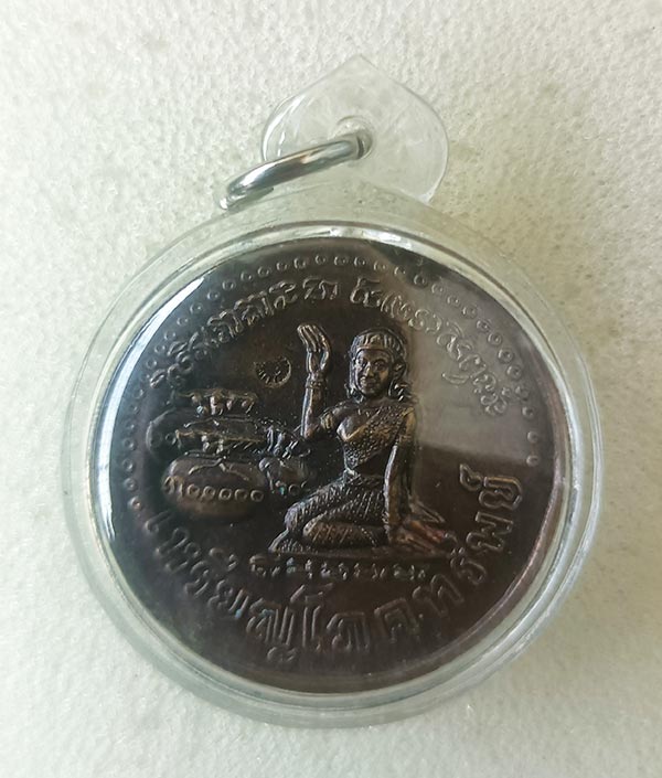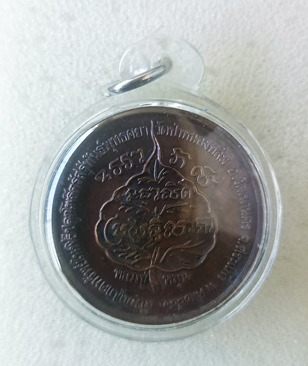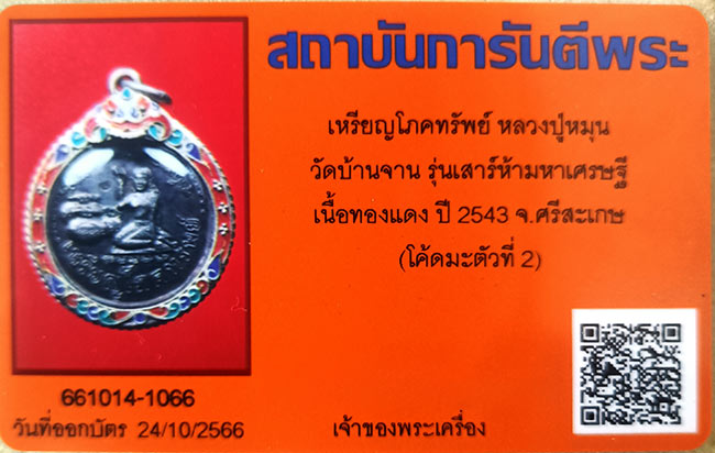 เหรียญโภคทรัพย์ หลวงปู่หมุน วัดบ้านจาน รุ่นเสาร์ห้ามหาเศรษฐี เนื้อทองแดง ปี 2543 จ.ศรีสะเกษ ( โค้ดมะตัวที่ 2 ) พร้อมเลี่ยม + บัตรรับรอง ( ไม่มีกรอบเงินลงยาแล้ว )