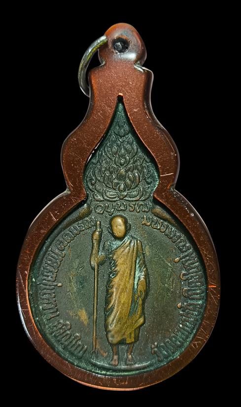เหรียญหลวงปู่แหวน วัดดอยแม่ปั๋ง ยืนถือไม้เท้า หลัง มวก. ปี2519 เนื้อทองแดง เหลี่ยมโบราณ