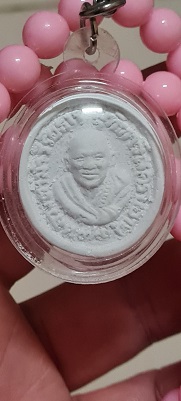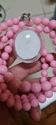 พระผงจักรพรรดิ์ หลวงตาม้า วัดถ้ำเมืองนะ พร้อมรอยจารหลวงตาม้า เลี่ยมจากวัดพร้อมประคำชมพูรักแท้