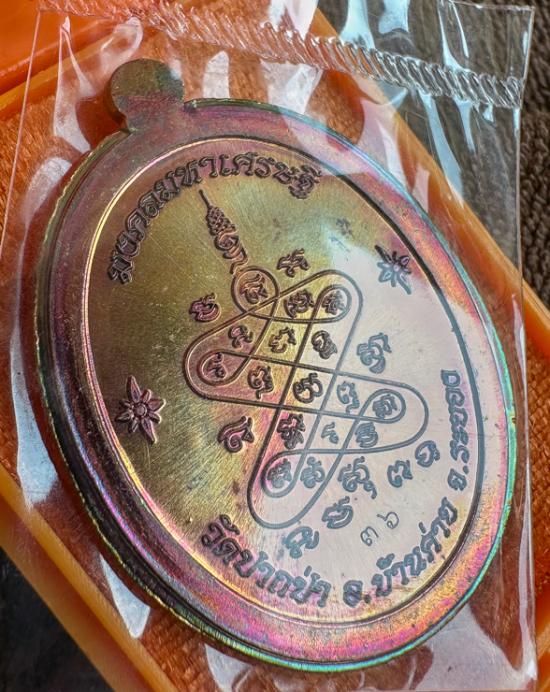 เคาะเดียวแดง เหรียญมงคลมหาเศรษฐีหลวงพ่อใย เนื้อสัตตะไม่ตัดปีก เลข 36 ครับ