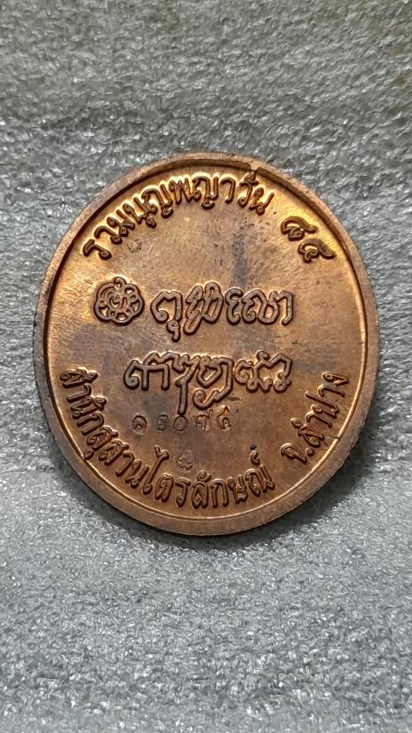 วัดใจเคาะเดียว......100.......เหรียญหลวงพ่อเกษม เขมโก รวมบุญพญาวัน ๘๔ เนื้อทองแดง ตอกโค๊ต + เลข 12074 สวยคากล่อง |