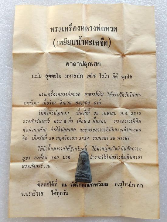 เคาะเดียวแดง ....หลวงปู่ทวดเนื้อว่าน วัดโกลกเทพวิมล อ.สุไหงโก-ลก จ.นราธิวาส ปี2510 พร้อมซองเดิมและใบกำกับ อาจารย์ทิม วัดช้างให้ พ่อท่านคล้าย วัดสวนขัน ปลุกเสก สภาพสวย |