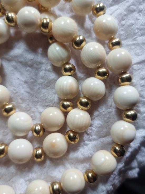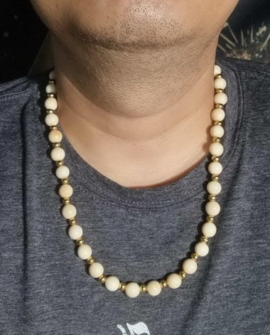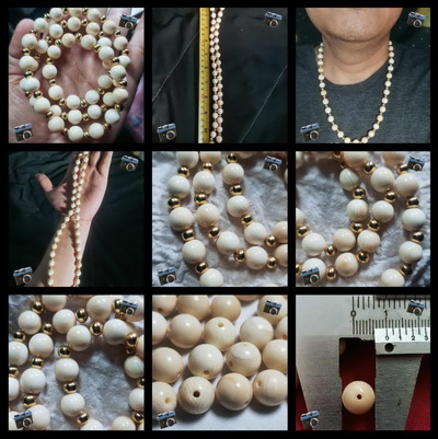สร้อยคอประคำเม็ดงา ขนาด10 มิลเม็ดใหญ่สวยๆ 40 เม็ด คั่นด้วยเม็ดทองเลเซอร์ 6มิล ความยาว 11 นิ้วสวมหัวได้ ลายสวยๆชัดๆ