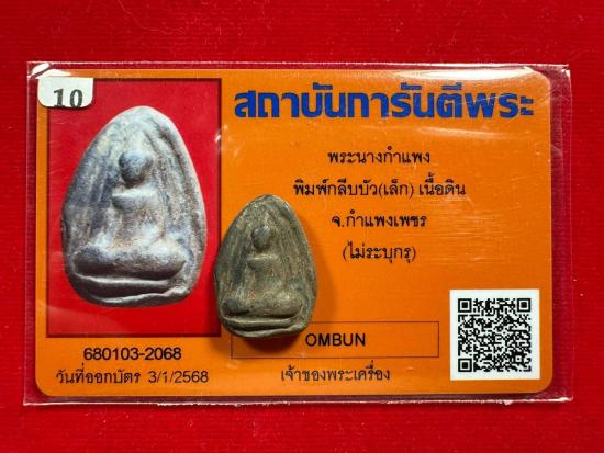 พระนางกำแพง พิมพ์กลีบบัวเล็ก เนื้อดิน จ.กำแพงเพชร มีบัตรการันตี