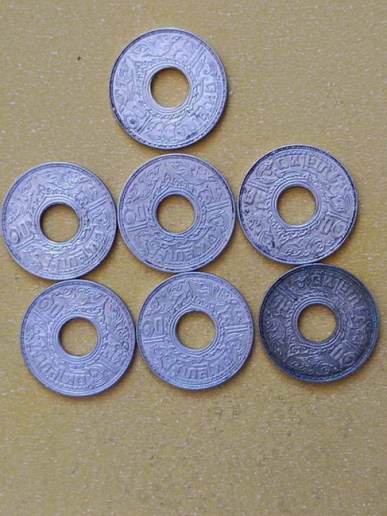 เหรียญรูแข้งสิงห์เนื้อเงิน 10 สตางค์ 7 เหรียญ