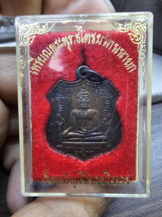 เหรียญหลวงพ่อโต วัดพนัญเชิง ปี 2533 เนื้อทองแดงรมดำ ตอกโค้ดด้านหน้า |
