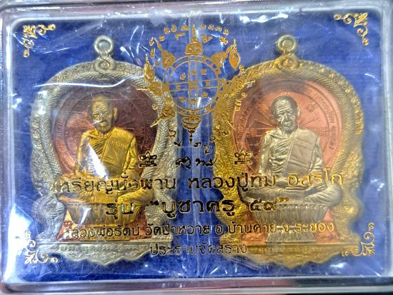 เหรียญนั่งพานหลวงปู่ทิม รุ่น "บูชาครู 2559 พร้อมกล่อง มีแค่ 2 เหรียญนะครับ ซีนเดิมกล่องเดิม