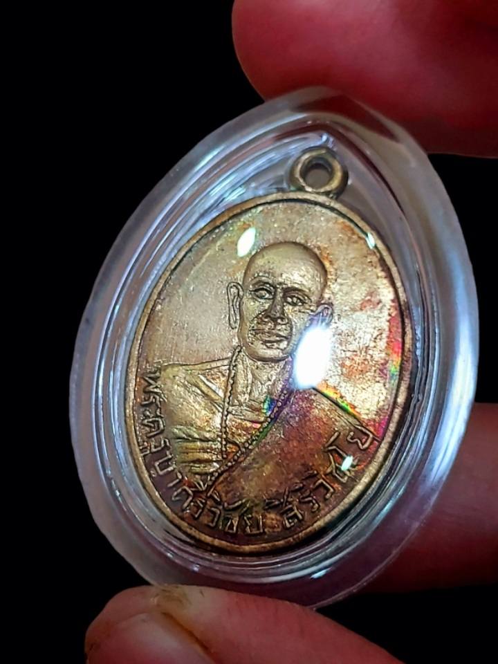 เหรียญครูบาศรีวิชัย หลังพระธาตุดอยสุเทพ ปี2492 (บัตรสภาพสวย) พิมพ์หน้าแก่ เนื้อทองแดงกะไหล่ทอง #สวยแชมป์