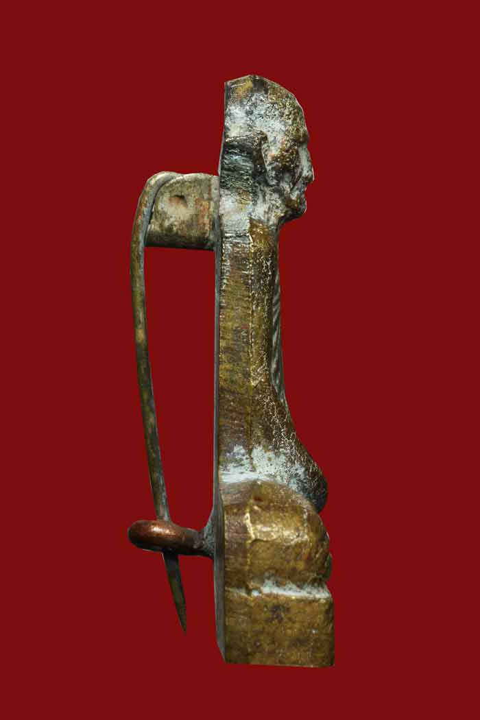 พระรูปเหมือนปั๊ม หลวงพ่อพรหม วัดช่องแค รุ่นเข่ากว้างหลังเข็ม เนื้อทองระฆัง สร้างในปี พ.ศ. 2516 จัดสร้างจำนวน 2,000 องค์