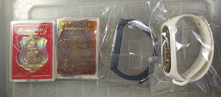 เหรียญพญายม หลวงปู่เชิด วัดเที่ยงพิมลมุข ฉะเชิงเทรา +เหรียญท้าวเวสสุวรรณรุ่นรวยเหลือล้น หลวงปู่บุดดา วัดป่าใต้พัฒนาราม สระแก้ว+สายรัดข้อมือท้าวเวสสุรรณ 2 เส้น |