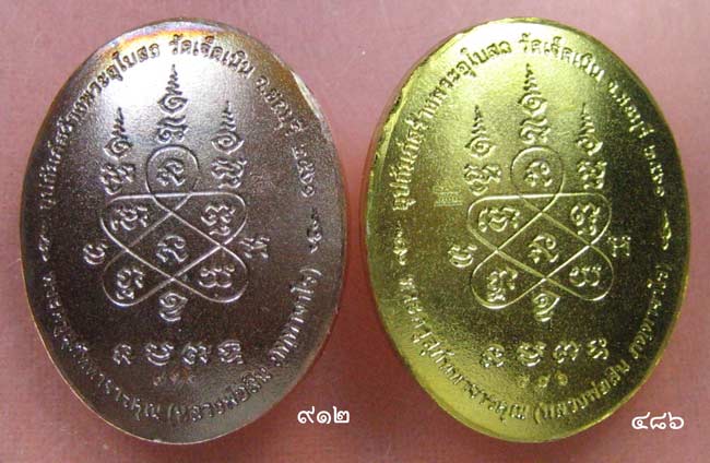 เหรียญหลังเต่า รุ่น เศรษฐีบูรพา เนื้อทองระฆัง หมายเลข ๔๘๖ และทองแดงผิวไฟ หมายเลข ๙๑๒ พร้อมกล่องเดิมๆ