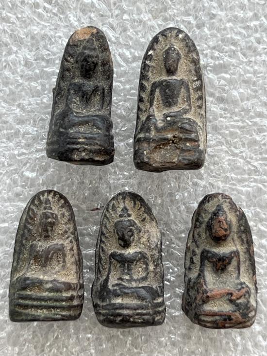 พระรอดเนื้อดินลงรักดำ 5องค์ ไม่ทราบที่
