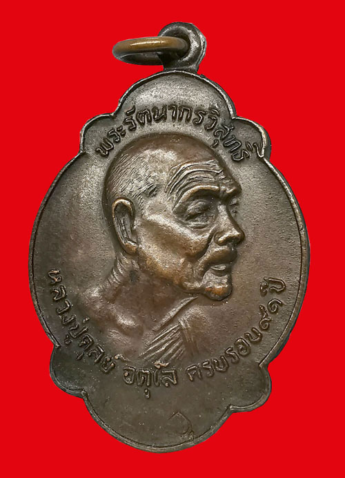 เหรียญหลวงปู่ดุลย์ วัดบูรพาราม รุ่นไตรมาส เนื้อทองแดง ห่วงเดิม ปี2521 จ.สุรินทร์ + บัตรG-pra สภาพเดิมค่ะ |