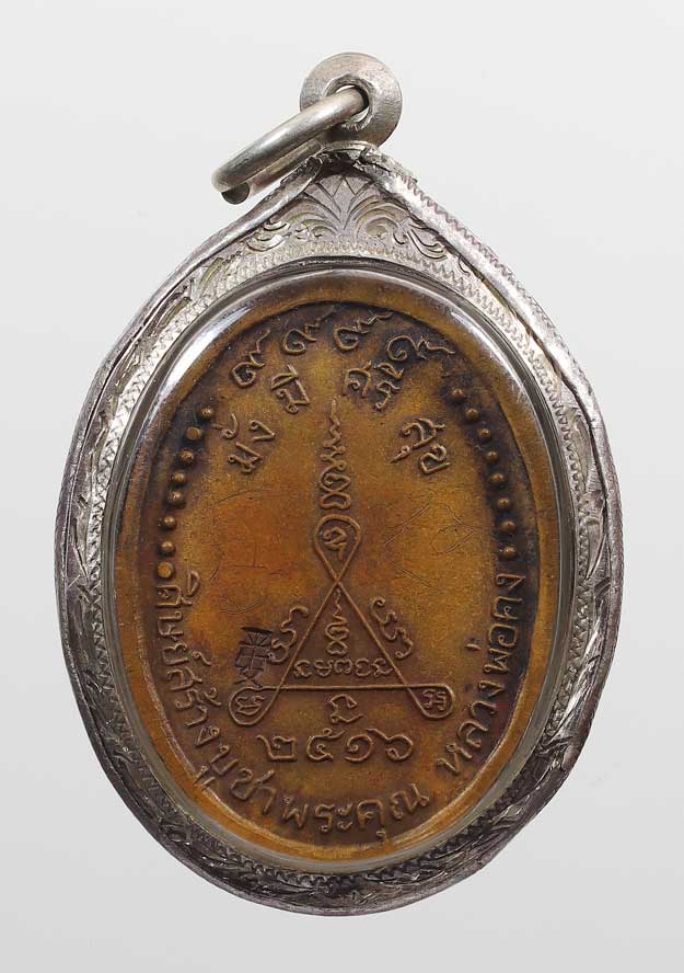 เหรียญหลวงพ่อคง ปี2516 วัดถนนหัก (หลวงพ่อคูณ ปลุกเสก) มีรอยจาร + เลี่ยมเงินหนา + บัตร