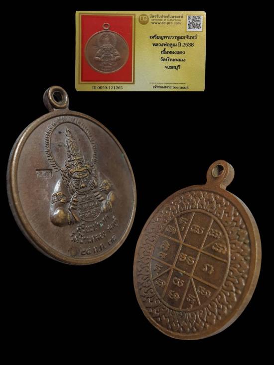 เหรียญพระราหู หลวงพ่อคูณ เนื้อทองเแดง ออก วัดบ้านคลอง ปี 2538 พร้อมบัตรรับรอง