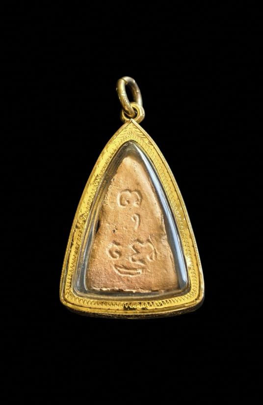 พระพุทโธน้อย พิมพ์เล็กหน้าตุ๊กตา (ตาโปนอกแฟบ) หลังยันต์พุทโธ แม่ชีบุญเรือน วัดอาวุธฯ ปี 2494 จ.กรุงเทพฯ สภาพสวยมาก พร้อมเลี่ยมทอง 80% (เคาะเดียวแดง)
