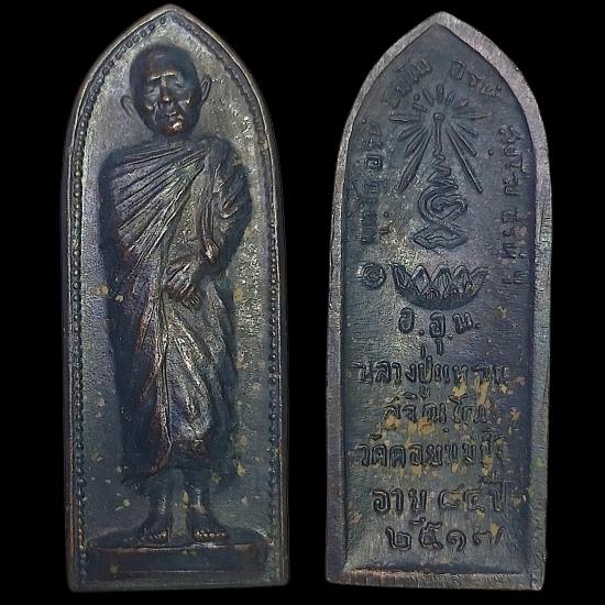 (2)วัดใจเหรียญหลวงปู่แหวน พิมพ์ยืน หลังรางปืน เนื้อทองแดงรมดำเดิมๆ ปี 2517 จ.เชียงใหม่ |