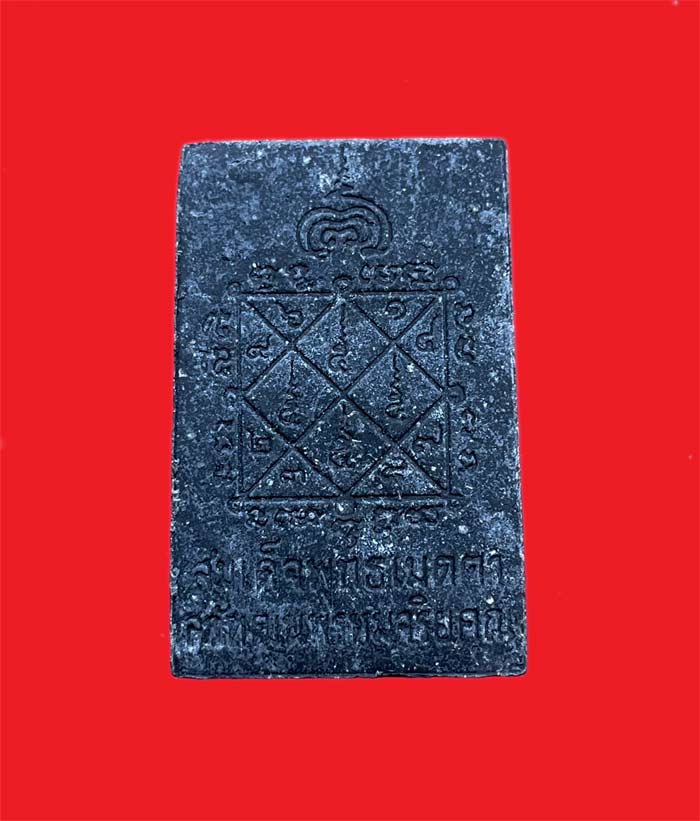 เนื้อผงใบลาน เผาตามสูตรโบราณ เนื้อแกร่ง นวลตา ตามแบบฉบับพระยุคกลาง หลังยันต์ตรีนิสิงเห ลายเส้นคมชัด อันเป็นเอกลักษณ์เฉพาะตัวของหลวงปู่ เด่นด้านเมตตาค้าขาย เป็นที่รักแก่ผู้พบเห็น และคุ้มครองป้องกันภัย