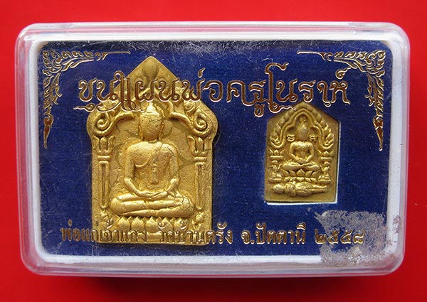 พระขุนแผนพ่อครูโนราห์ พ่อแก่เจ้าแสง วัดบ้านตรัง จ.ปัตตานี เนื้อว่าน108 พิมพ์ใหญ่+เล็ก ตะกรุดทองแดง สวยเดิม