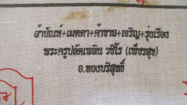 ผ้ายันต์ พระครูปลัดเพลิน วชิโร (เพ็ชรสุข) อ.ทองบริสุทธิ์