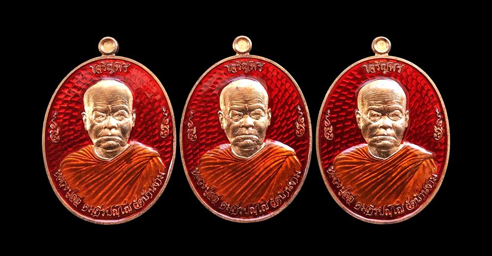 +!!เคาะเดียวllดง ตลอดสาย!!+ (รับชุด 3 เหรียญ) เหรียญเจริญพร หลวงปู่สอ วัดบ้านขาม จ.สุรินทร์ ปี2559 เนื้อทองแดงลงยาแดง โค้ดและเลขสวยๆตามรูป พร้อมกล่องเดิมครับ