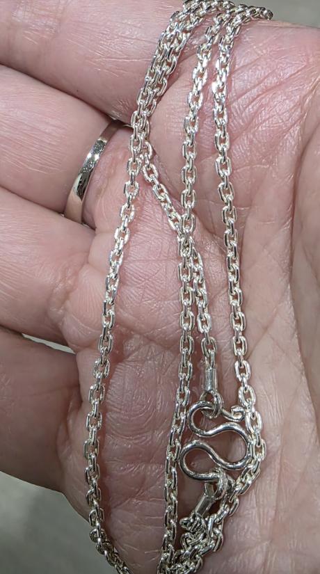 มือหนึ่งสร้อยเงินแท้ลายโซ่คดกริช ยาว 18.5 นิ้ว กว้าง 2 มม หนัก 6.43 กรัม เงางามวาววับ งานตันๆแข็งแรง เป็นของใหม่มือ 1 ไม่ผ่านการใช้งานมาก่อนครับ
