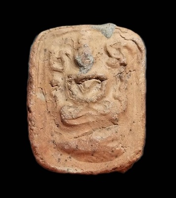 พระพิมพ์หลวงพ่อปาน ขี่ปลา เนื้อดินเผา อุดผงเด็ม สร้างและปลุกเสกปี 2527