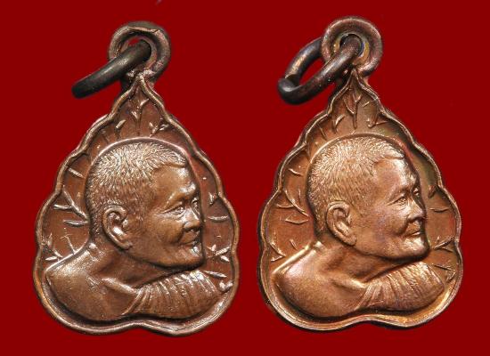 หลวงปู่แหวน วัดดอยแม่ปั๋ง ใบโพธิ์เล็ก ปี 27 ทองแดง 2 องค์