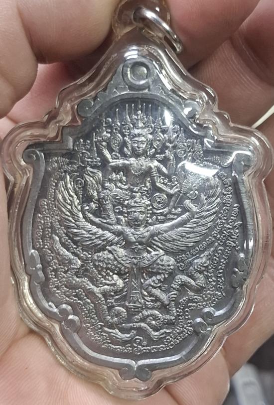 เหรียญพระนารายณ์ทรงครุฑ รุ่นแรก ปี49 หลวงปู่กาหลง เขี้ยวแก้ว เนื้อตะกั่วขอมพันปี เลี่ยมพร้อมบูชา