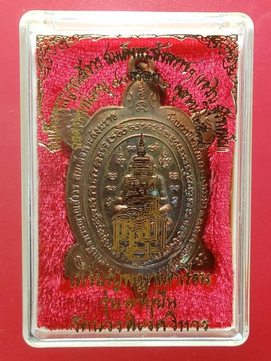 พญาเต่าเรือน รุ่นอายุยืน ฉลองพระชนมายุ ๘๐ พรรษา ๓ ตุลาคม ๒๕๓๖ เนื้อทองแดงผสมชนวนพระสังกัจจายน์ญส.ปี ๒๕๓๐ (พระสังกัจจายน์ญส.รุ่นแรก ปี ๒๕๓๐ เป็นรุ่นสำคัญมีส่วนผสมของชนวนพระกริ่งบวรรังสี ๒๕๒๘ และชนวนพระกริ่งปวเรศ ๒๕๓๐ ล้วน ๆ โดยไม่มีชนวนพระรุ่นอื่นเจือปนเลย) พิธีพุทธาภิเษก-ชัยมังคลาภิเษก ณ พระอุโบสถวัดบวรนิเวศวิหาร หลวงปู่หลิว ปณฺณโก วัดไร่แตงทอง เทพเจ้าแห่งพญาเต่าเรือน ร่วมปลุกเสกในพิธี หลวงพ่อเปิ่น หลวงพ่อแย้ม วัดสามง่าม หลวงพ่อพูล วัดไผ่ล้อม หลวงพ่อไสว วัดปรีดาราม หลวงพ่อแช่ม วัดดอนยายหอม หลวงพ่อยิด วัดหนองจอก หลวงพ่อสง่า วัดบ้านหม้อ ฯลฯ ร่วมพิธี เคาะเดียว พระมาพร้อมกล่องเดิม