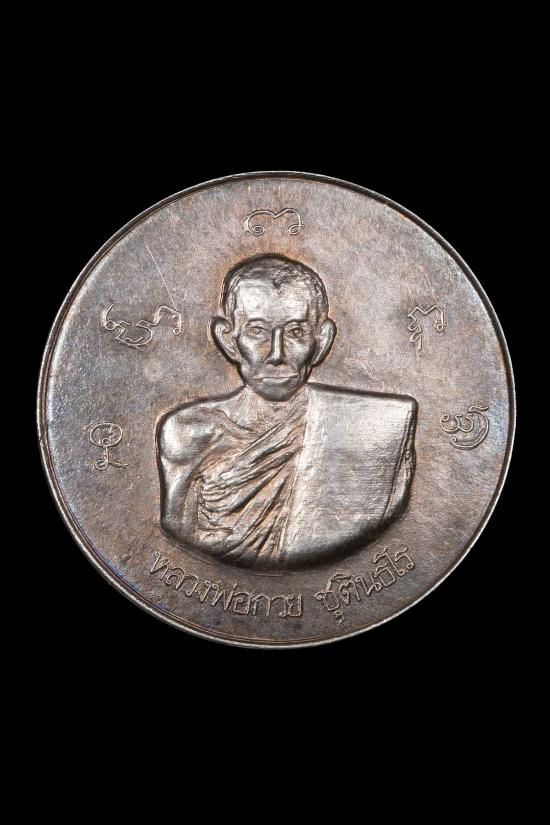 เหรียญกลมรูปเหมือน หลวงพ่อกวย วัดพระปรางค์ สิงห์บุรี ปี 2515 เนื้อเงิน