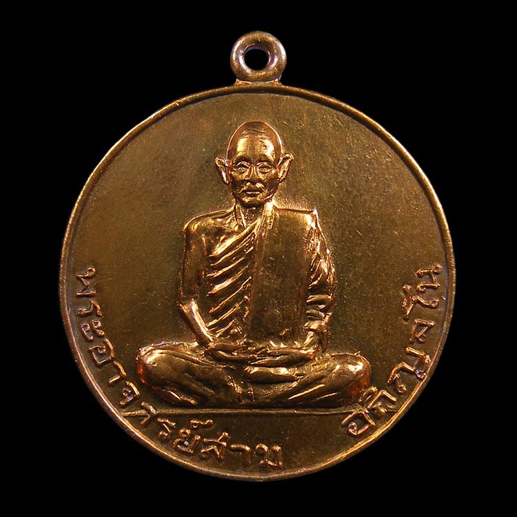 เหรียญรุ่น 2 หลวงปู่สาม อกิญจโน วัดป่าไตรวิเวก เนื้อทองแดง ปี 2514 สภาพสวย ผิวแดงๆ ปัจจุบันเลี่ยมพลาสติกใสกันน้ำแล้ว
