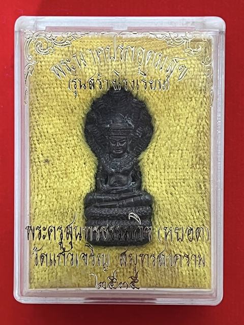 พระนาคปรกอุดมสุข หลวงปู่หยอด วัดแก้วเจริญ ปี 2535 เนื้อนวโลหะ ตอกโค๊ด กล่องเดิม เคาะเดียวแดงครับ