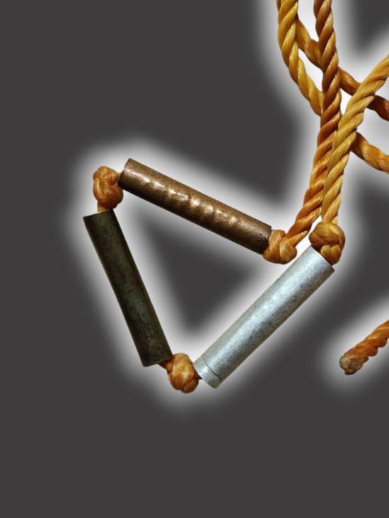 A6668.วัดใจเครื่องรางเก่า ตะกรุดสาริกา 3 ดอก เชือกเดิม ไม่ทราบที่ เคาะเดียวเเดง |