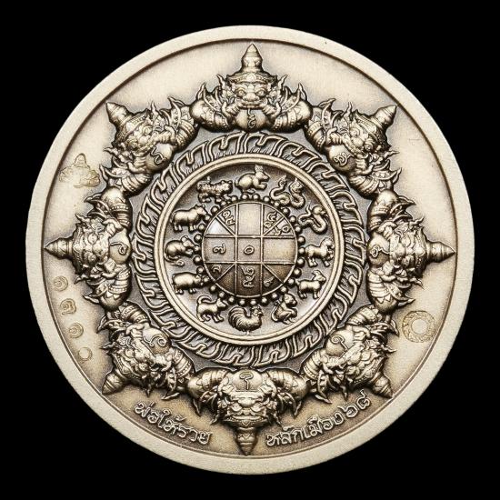 เหรียญบรมครูตาขุนโหร หลักเมือง ๖๘ รุ่น "พ่อให้รวย" นครศรีธรรมราช จัดสร้างโดย หมึก ท่าพระจันทร์ เนื้ออัลปาก้าซาติน หมายเลข ๑๓๑๐ พร้อมกล่องเดิม ปลุกเสก ๔ วาระ พิธีใหญ่แห่งปี เกจิดังทั่วประเทศร่วมปลุกเสก