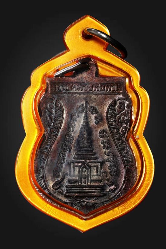 เหรียญพุทธซ้อน ปี 39 ทองแดงรมดำ บล็อก พ.ศ. เลี่ยมกรอบวินเทจ ผิวสวยมากครับ
