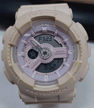 เรือนนี้เป็นตัวเรือนสีขาว น้าปัดตัดขอบม่วงพื้นวงนอก ด้านในสีชมพู น่ารักมาก |