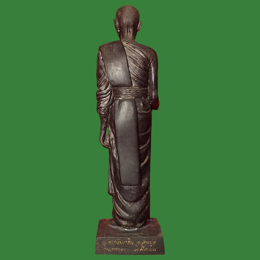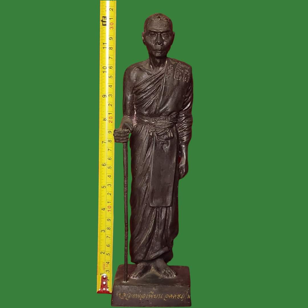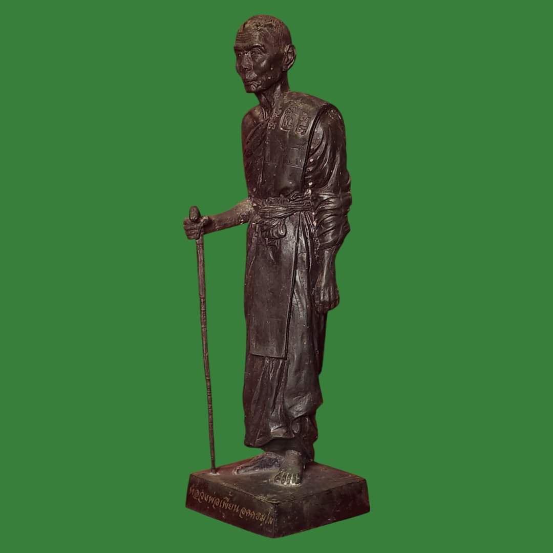 พระบูชายืนถือไม้เท้ารุ่นแรก หลวงพ่อเพี้ยน อคฺคธมฺโม วัดเกริ่ นกฐิน เททองฯ 17 มี.ค.2544 เนื้อโลหะรมดำมันปู ผิวหิ้ง !!