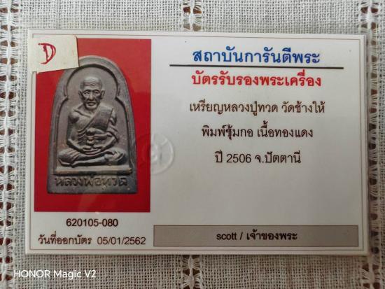 เหรียญหลวงปู่ทวด วัดช้างไห้ พิมพ์ซุ้มกอ เนื้อทองแดง ปี 2506 จังหวัดปัตตานี มาพร้อมบัตรรับรองจีพระ