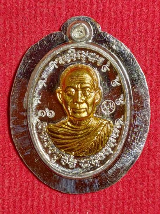 รายละเอียด เหรียญเม็ดแตงหลวงปู่จื่อ พันธมุตโต รุ่น เจริญพร ออกวัดแจ้งนอก ปี 59 เนื้อ เงินพิมพ์กรรมการไม่ตัดปีกหลังยันต์ หน้าทองคำ หมายเลข 16 ตอกโค๊ตเลข 9 เก้าตัว เคาะเดียวแดง