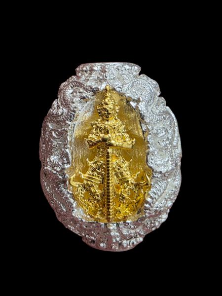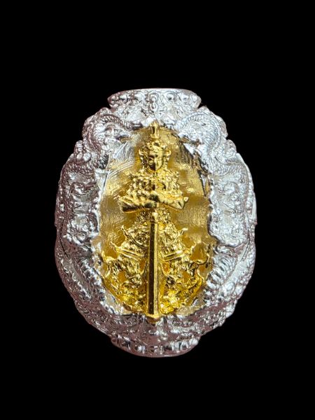 ประคำโทน รุ่นแรก ท้าวเวสสุวรรณโณ จตุมหาราชิกา พุทธศิลป์ รุ่นหนึ่ง เนื้อเงินบริสุทธิ์ องค์ทองคำบริสุทธิ์ทั้ง 2 ด้าน เลข ๑๖ ไม่มีกล่อง