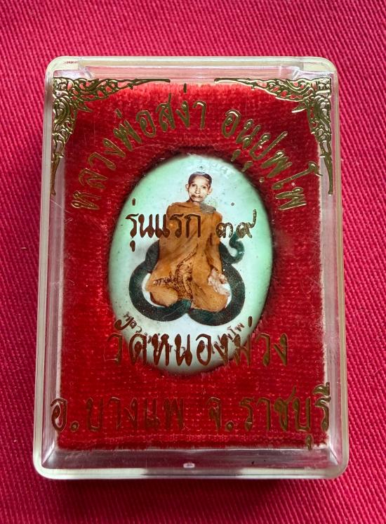 วัดใจไปเลย ล็อกเก็ตหลวงพ่อสง่า วัดหนองม่วง จ. ราชบุรี รุ่นแรก ปี 2539 หลังอุดเทียนชัย เกศา ตะกรุด |