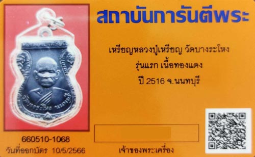 เหรียญรุ่นแรก เนื้อทองแดง หลวงปู่เหรียญ วัดบางระโหง 2516 สภาพสวยคมและเดิม