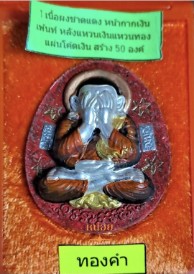 พระผงเปิดตารุ่น "โชคดี" รุ่นแรกและรุ่นเดียวของหลวงปู่สมบุญ ปิยธมฺโม วัดลำพันบอง จ.สุพรรณบุรี เนื้อผงชาดแดงองค์เงินแท้เพ้นท์ หลังยันต์มือแหวนเงินและแหวนทองคำแท้ แผ่นโค้ตเงิน เลข 40 สร้างน้อย เพียง 50 อ