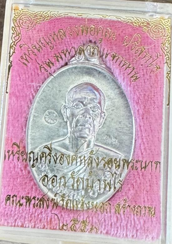 เหรียญ หลวงพ่อคูณ ปริสุทฺโธ รุ่นมหาลาภแจกทาน หลังรอยพระบาท หน้าศรีนคร เนื้อเงิน หมายเลข72 มีกล่องครับ