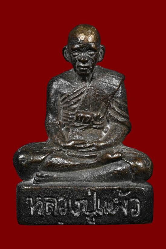รูปหล่อโบราณ หลวงปู่แผ้ว พิมพ์ฐานสูง เนื้อนวะโลหะ ปี 2552 สภาพสวย พร้อมกล่องเดิมและบัตรรับรอง