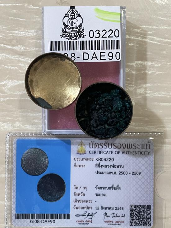 (เคาะแดง4900) +บัตรสมาคม ตลับสีผึ้งเขียวหลวงพ่อทาบ วัดกระบกขึ้นผึ้ง